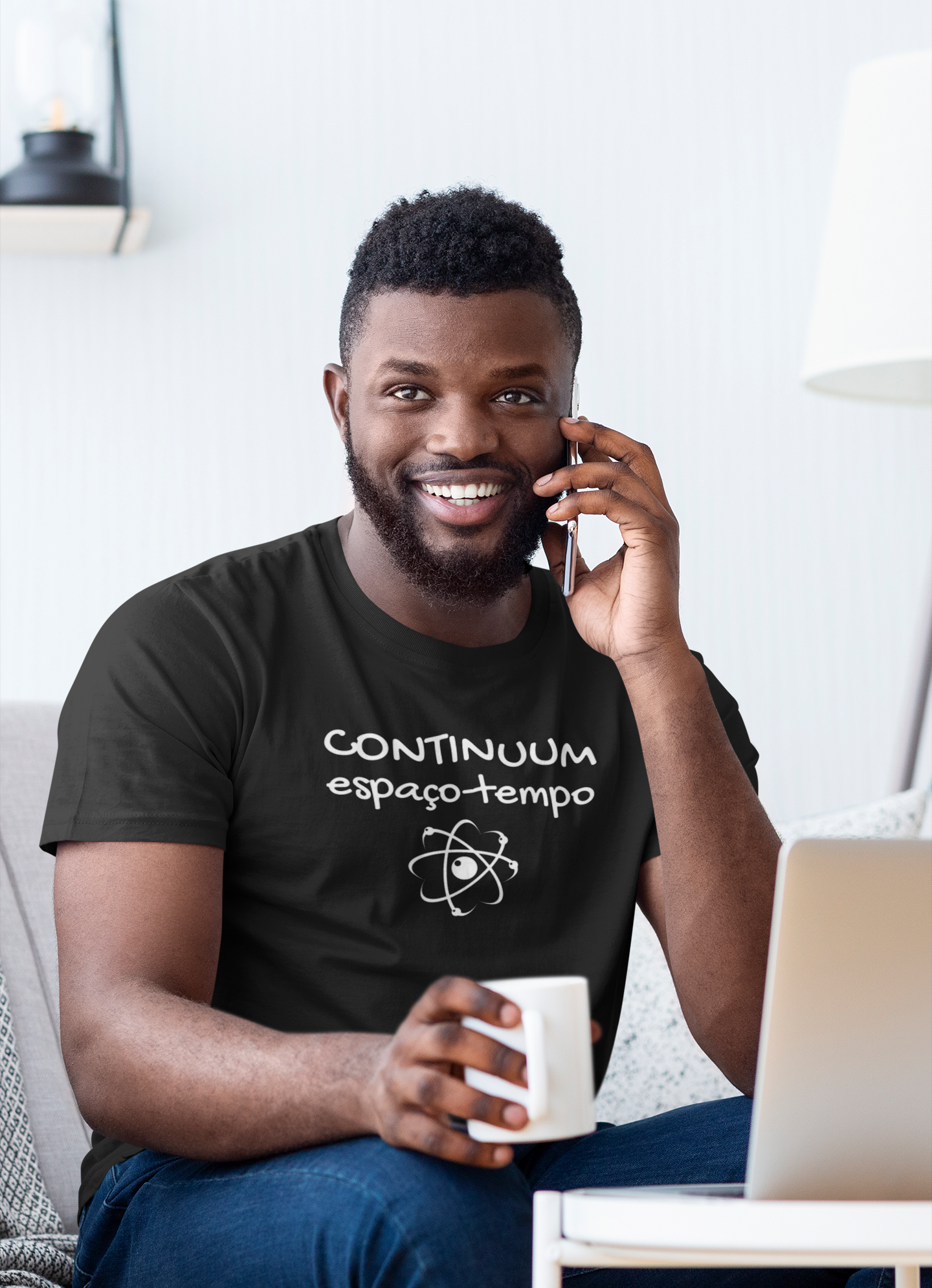 Viaje pelo fluxo do espaço-tempo com a Camiseta CONTINUUM. Inspirada no conceito da continuidade entre passado, presente e futuro, esta estampa representa a conexão infinita do universo.
