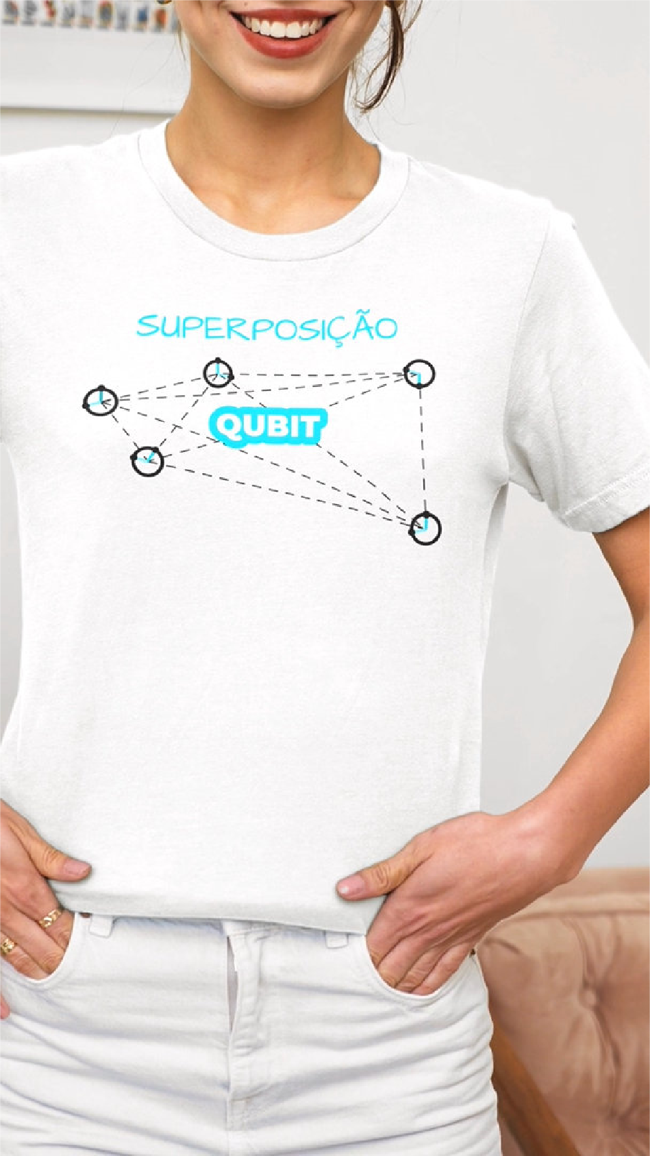 A Camiseta Qubit Superposição é uma expressão visual do conceito revolucionário da mecânica quântica. Inspirada na superposição quântica, onde um qubit pode existir simultaneamente em múltiplos estados, essa estampa simboliza as infinitas possibilidades da realidade. Feita em material de alta qualidade, confortável e versátil, essa peça é ideal para quem ama ciência, tecnologia e o fascinante universo quântico.